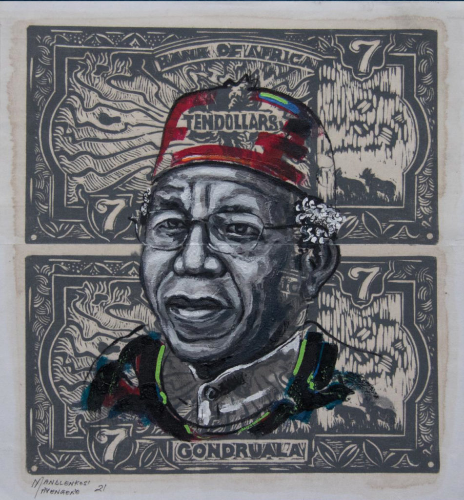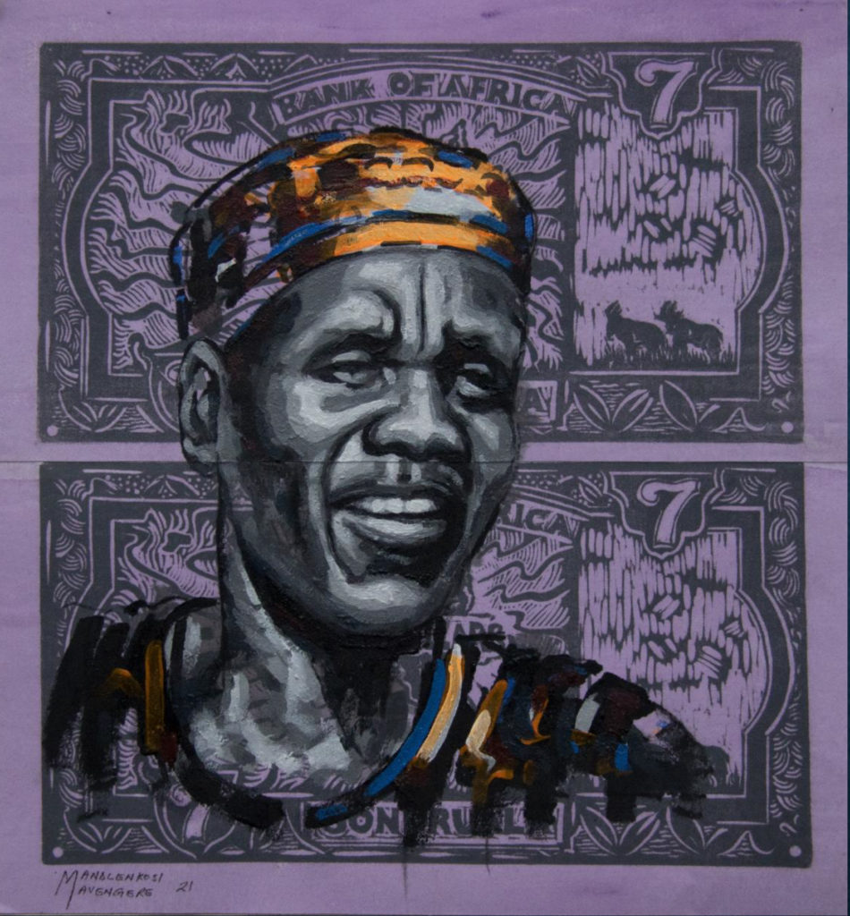 Pertaining to the artworks in THE BLACK SHEEP series, it refers to the perfect imperfections of the iconic characters as we observe what they stood for in their reign. Through the legacy of these Icons, this series stimulates conversations and discussions based on how much of the African history we know. This work is also meant to question the context of history that has been at our disposal subsequently giving us the perceptions that we have on the African icons who are poised as heroes or vice-a-versa.
